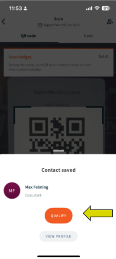 You've probably seen this in the Lead Retrieval Guide you were looking through, but just want to emphasize as soon as your team completes a scan, a little "Qualify" button will appear - once they click that, all of your questions will pop up.