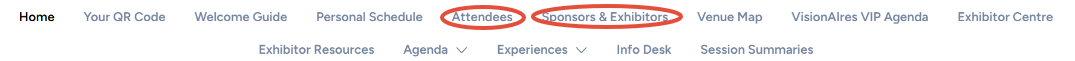 Lastly, you can network with other participants by clicking on "Attendees" and/or looking at other exhibitors and sponsors who are coming to the event: